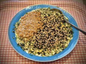 これは↑↑卵四つと納豆と、韓国海苔、ニンニクゴマ