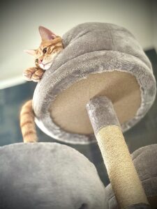 キャットタワーから安全をパトロールしてくれてます