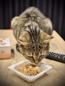 好物は納豆です😌塩分に気をつけないといけないので、タレがかかってない時に食べるかと置いておいても食べず、タレかけて、混ぜて放置してたら匂い?音?に走ってかけよってきます☺️