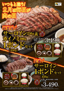 ▶︎サービス内容: 毎月29日は「肉の日」限定メニューとして、通常よりもかなりお得な価格でステーキ(特に1ポンドステーキなど)が提供されます。
