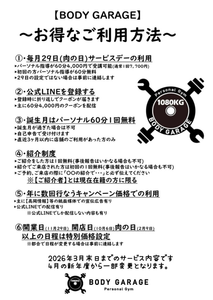 いつもありがとうございます🙇 富山県高岡市にあるパーソナルジム BODY GARAGEの石築(いしずき)です😊 本日、今月2回目の公式LINEを配信いたしましたὤ […]