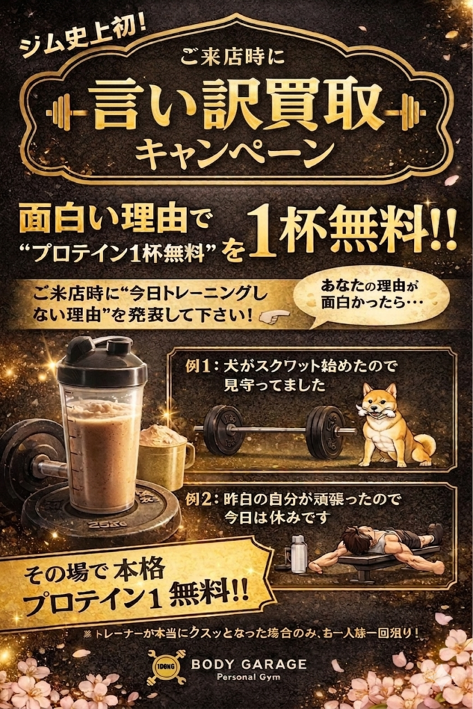 いつもありがとうございます🙇 富山県高岡市にあるパーソナルジム BODY GARAGEの石築(いしずき)です😊 本日エイプリルフール。。。 こんなキャンペーンあったら… なん […]